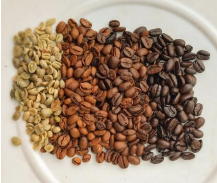 Figura 01: Grãos de café após diferentes intensidades de torras