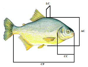 Figura 2. Medidas morfométricas realizadas no Pacu. Fonte: Adaptado de COSTA et al., 2020b.